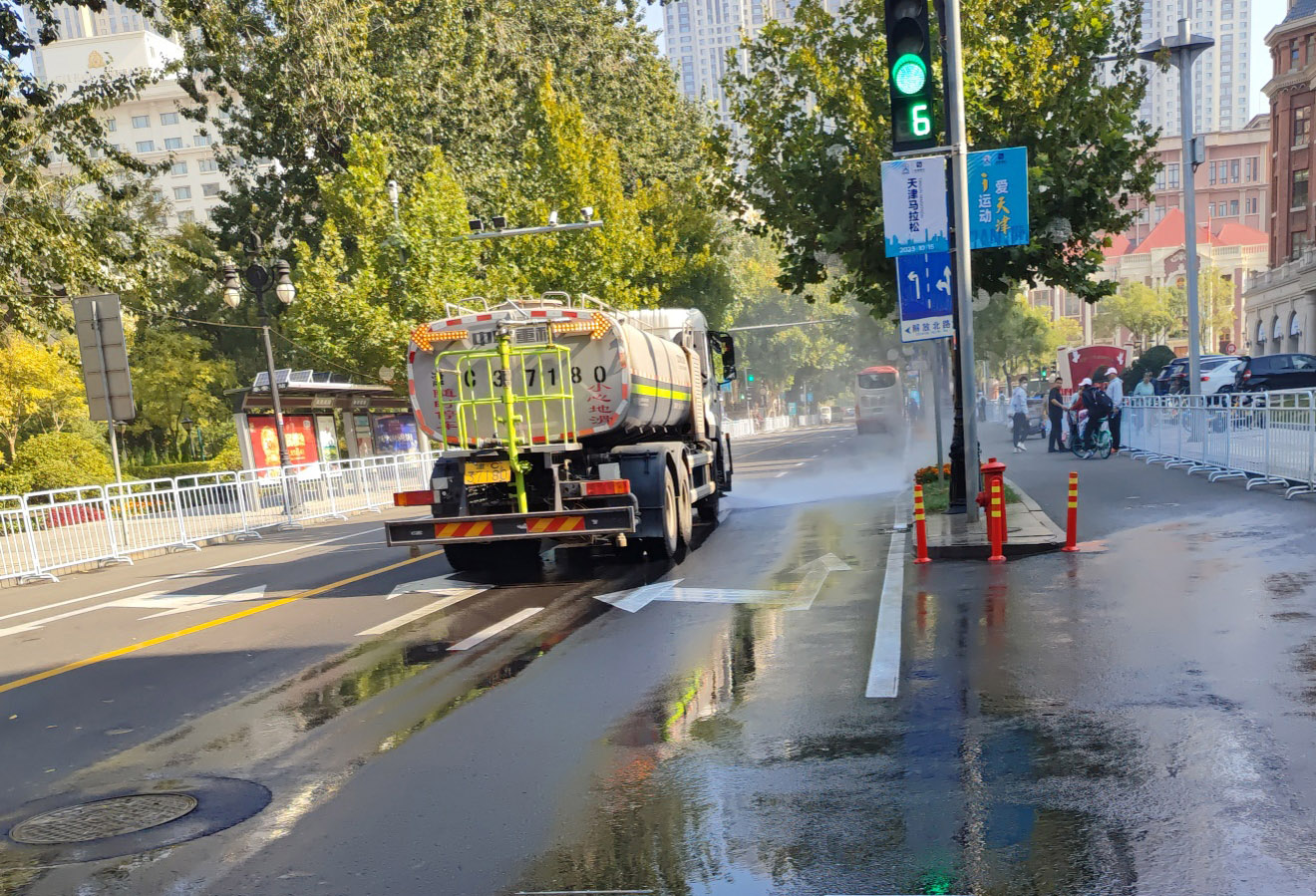 華富天津項(xiàng)目早安排、早部署,除了日常保潔的“常規(guī)動(dòng)作”外,在清潔工作的細(xì)節(jié)上進(jìn)一步強(qiáng)化措施。為確保賽道保潔效果,專門增加機(jī)械化清洗頻次,每天出動(dòng)高壓沖洗車、灑水車及環(huán)衛(wèi)工人對(duì)賽道路面進(jìn)行“拉網(wǎng)式”沖洗。同時(shí),組織人員精細(xì)化擦洗賽道沿線果皮箱、垃圾桶等收集容器,并對(duì)綠化帶等衛(wèi)生死角進(jìn)行了及時(shí)清理。