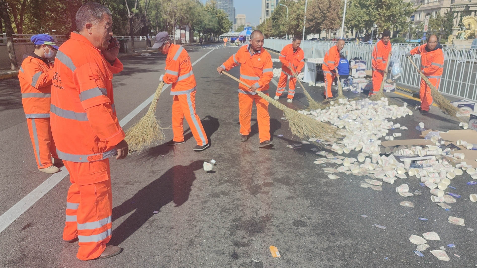 比賽結(jié)束后,華富環(huán)境迅速集結(jié)保潔力量,作業(yè)人員齊上陣,對(duì)賽區(qū)所有道路進(jìn)行快速清理,在最短時(shí)間內(nèi)將現(xiàn)場(chǎng)遺留的塑料袋、一次性紙杯、紙屑、煙頭等垃圾,垃圾清運(yùn)車輛配合運(yùn)送,路面快速恢復(fù)了整潔。