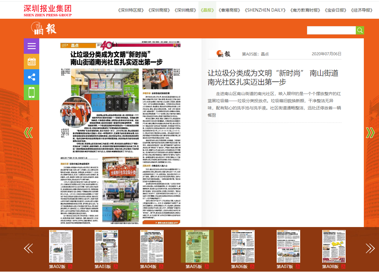 深圳晶報(bào)相關(guān)報(bào)道——華富環(huán)境南光村垃圾分類(lèi)督導(dǎo)服務(wù)項(xiàng)目。